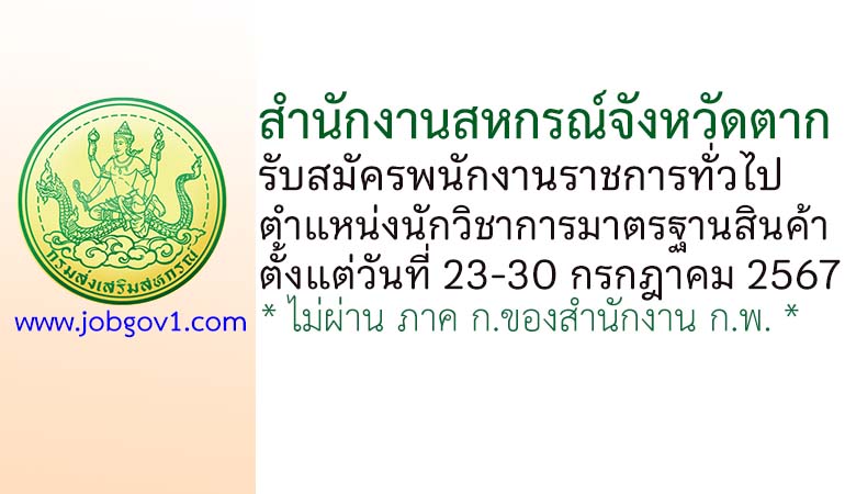 สำนักงานสหกรณ์จังหวัดตาก รับสมัครพนักงานราชการทั่วไป ตำแหน่งนักวิชาการมาตรฐานสินค้า ตั้งแต่วันที่ 23-30 กรกฎาคม 2567