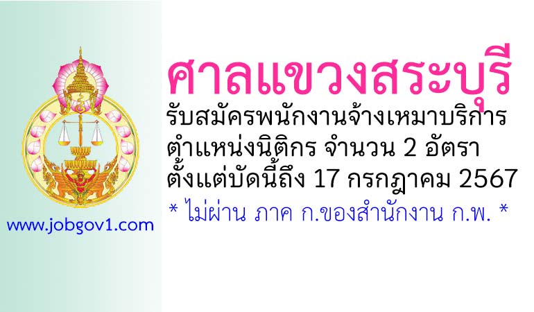 ศาลแขวงสระบุรี รับสมัครพนักงานจ้างเหมาบริการ ตำแหน่งนิติกร 2 อัตรา ตั้งแต่วันที่ 4-17 กรกฎาคม 2567