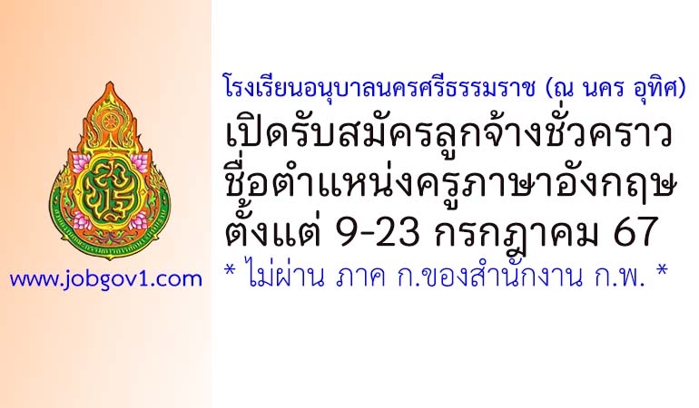 โรงเรียนอนุบาลนครศรีธรรมราช (ณ นคร อุทิศ) รับสมัครครูอัตราจ้าง สอนภาษาอังกฤษ ตั้งแต่วันที่ 9-23 กรกฎาคม 2567