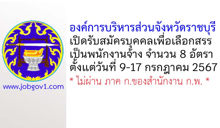 องค์การบริหารส่วนจังหวัดราชบุรี รับสมัครบุคคลเพื่อเลือกสรรเป็นพนักงานจ้าง 8 อัตรา ตั้งแต่วันที่ 9-17 กรกฎาคม 2567