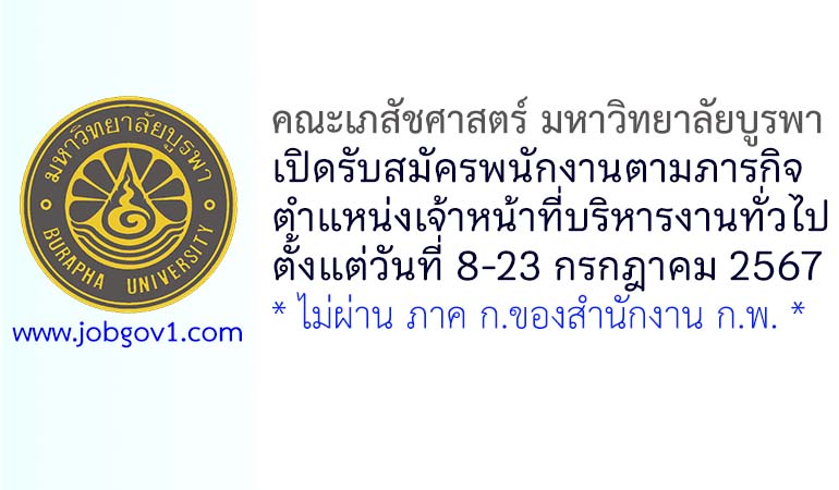 คณะเภสัชศาสตร์ มหาวิทยาลัยบูรพา รับสมัครพนักงานตามภารกิจ ตำแหน่งเจ้าหน้าที่บริหารงานทั่วไป ตั้งแต่วันที่ 8-23 กรกฎาคม 2567