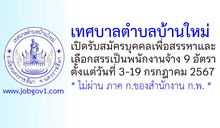 เทศบาลตำบลบ้านใหม่ รับสมัครบุคคลเพื่อสรรหาและเลือกสรรเป็นพนักงานจ้าง 9 อัตรา ตั้งแต่วันที่ 3-19 กรกฎาคม 2567