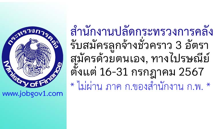 สำนักงานปลัดกระทรวงการคลัง รับสมัครลูกจ้างชั่วคราว 3 อัตรา ตั้งแต่วันที่ 16-31 กรกฎาคม 2567