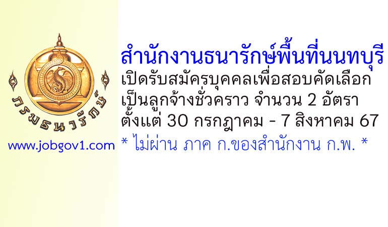 สำนักงานธนารักษ์พื้นที่นนทบุรี รับสมัครลูกจ้างชั่วคราว จำนวน 2 อัตรา ตั้งแต่ 30 กรกฎาคม – 7 สิงหาคม 2567