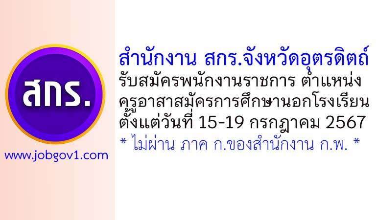 สำนักงาน สกร.จังหวัดอุตรดิตถ์ รับสมัครพนักงานราชการทั่วไป ตำแหน่งครูอาสาสมัครการศึกษานอกโรงเรียน ตั้งแต่วันที่ 15-19 กรกฎาคม 2567