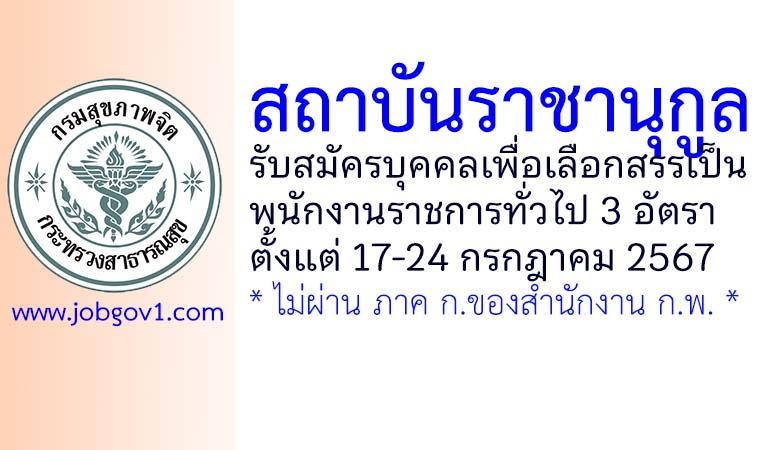 สถาบันราชานุกูล รับสมัครบุคคลเพื่อเลือกสรรเป็นพนักงานราชการทั่วไป 3 อัตรา ตั้งแต่วันที่ 17-24 กรกฎาคม 2567