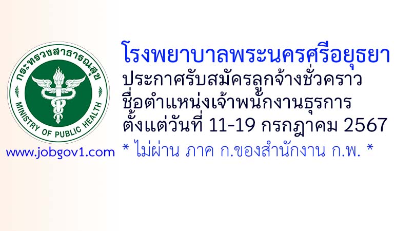 โรงพยาบาลพระนครศรีอยุธยา รับสมัครลูกจ้างชั่วคราว ตำแหน่งเจ้าพนักงานธุรการ ตั้งแต่วันที่ 11-19 กรกฎาคม 2567