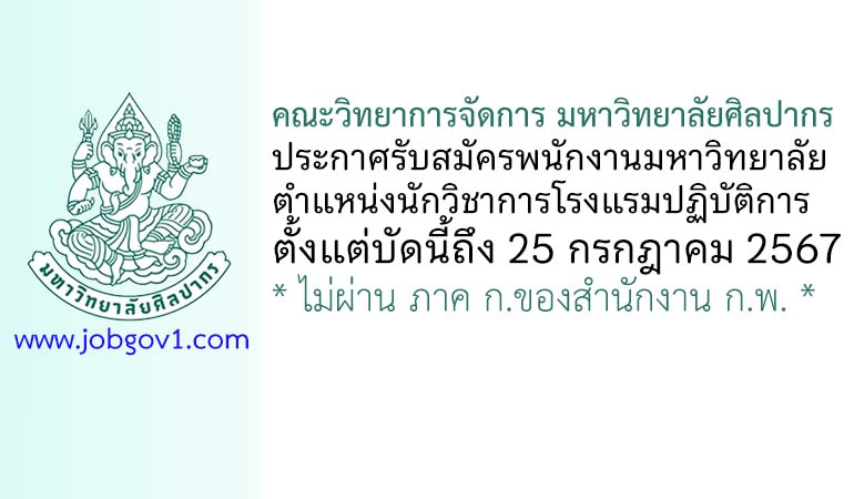 คณะวิทยาการจัดการ มหาวิทยาลัยศิลปากร รับสมัครพนักงานมหาวิทยาลัย ตำแหน่งนักวิชาการโรงแรมปฏิบัติการ ตั้งแต่บัดนี้ถึง 25 กรกฎาคม 2567