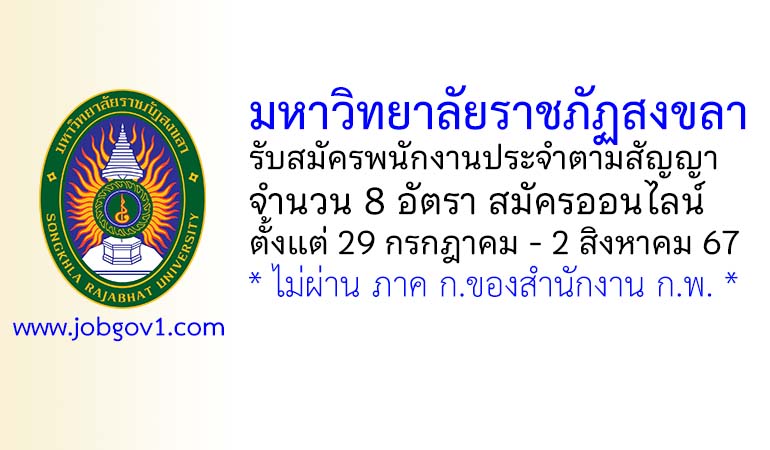 มหาวิทยาลัยราชภัฏสงขลา รับสมัครพนักงานประจำตามสัญญา 8 อัตรา ตั้งแต่ 29 กรกฎาคม – 2 สิงหาคม 2567