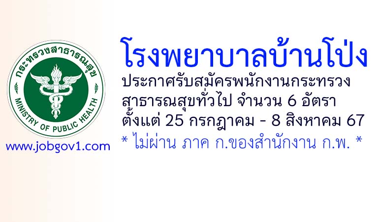 โรงพยาบาลบ้านโป่ง รับสมัครพนักงานกระทรวงสาธารณสุขทั่วไป 6 อัตรา ตั้งแต่ 25 กรกฎาคม – 8 สิงหาคม 2567