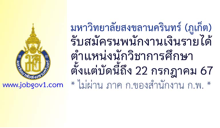 มหาวิทยาลัยสงขลานครินทร์ (ภูเก็ต) รับสมัครพนักงานเงินรายได้ ตำแหน่งนักวิชาการศึกษา ตั้งแต่บัดนี้ถึง 22 กรกฎาคม 2567