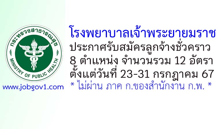 โรงพยาบาลเจ้าพระยายมราช รับสมัครลูกจ้างชั่วคราว 12 อัตรา ตั้งแต่วันที่ 23-31 กรกฎาคม 2567