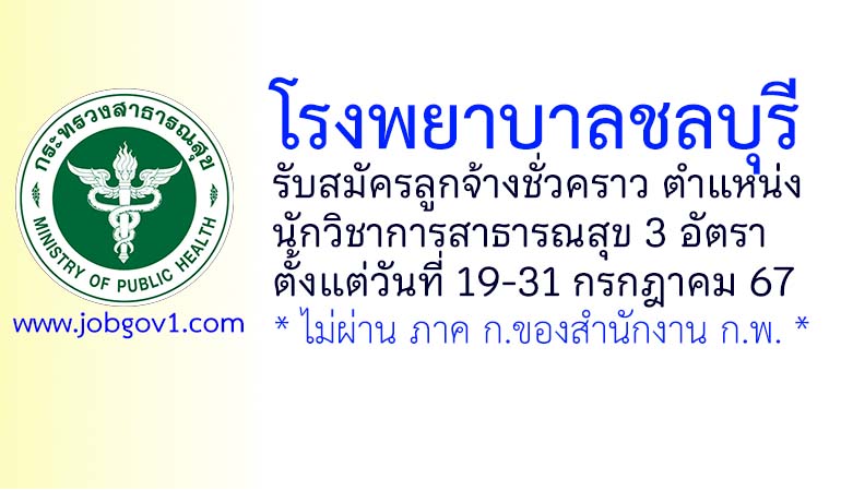 โรงพยาบาลชลบุรี รับสมัครลูกจ้างชั่วคราว ตำแหน่งนักวิชาการสาธารณสุข 3 อัตรา ตั้งแต่วันที่ 19-31 กรกฎาคม 2567