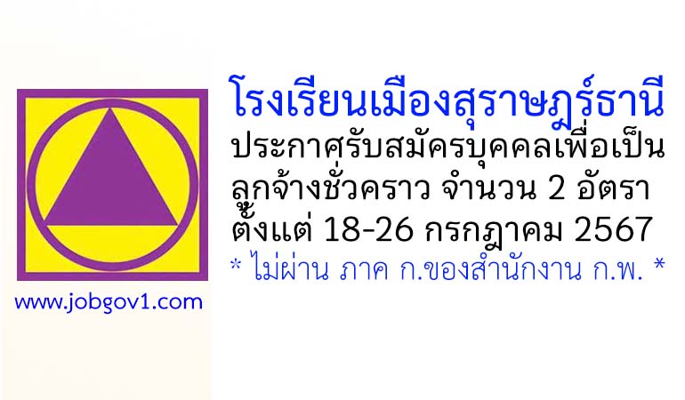 โรงเรียนเมืองสุราษฎร์ธานี รับสมัครลูกจ้างชั่วคราว 2 อัตรา ตั้งแต่วันที่ 18-26 กรกฎาคม 2567