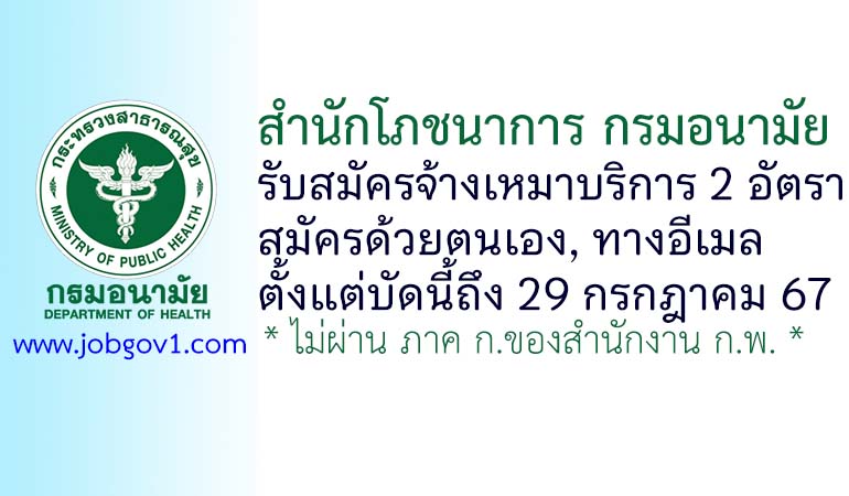 สำนักโภชนาการ กรมอนามัย รับสมัครจ้างเหมาบริการ 2 อัตรา ตั้งแต่บัดนี้ถึง 29 กรกฎาคม 2567