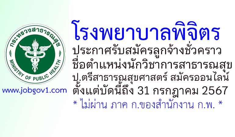 โรงพยาบาลพิจิตร รับสมัครลูกจ้างชั่วคราว ตำแหน่งนักวิชาการสาธารณสุข ตั้งแต่บัดนี้ถึง 31 กรกฎาคม 2567