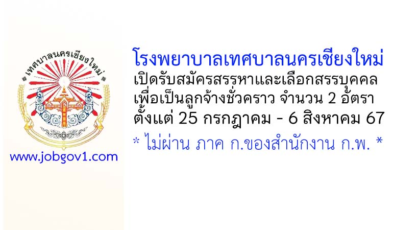 โรงพยาบาลเทศบาลนครเชียงใหม่ รับสมัครสรรหาและเลือกสรรบุคคลเพื่อเป็นลูกจ้างชั่วคราว 2 อัตรา ตั้งแต่ 25 กรกฎาคม – 6 สิงหาคม 2567