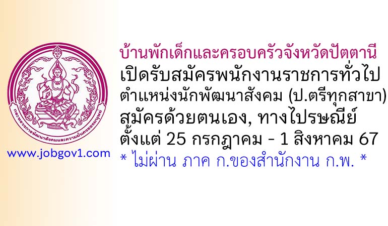 บ้านพักเด็กและครอบครัวจังหวัดปัตตานี รับสมัครพนักงานราชการทั่วไป ตำแหน่งนักพัฒนาสังคม ตั้งแต่ 25 กรกฎาคม – 1 สิงหาคม 2567