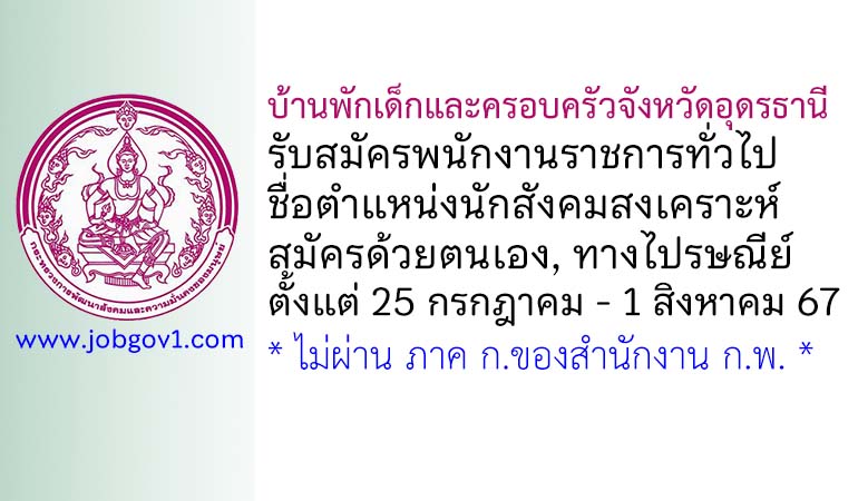 บ้านพักเด็กและครอบครัวจังหวัดอุดรธานี รับสมัครพนักงานราชการทั่วไป ตำแหน่งนักสังคมสงเคราะห์ ตั้งแต่ 25 กรกฎาคม – 1 สิงหาคม 2567