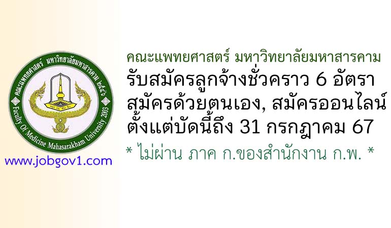 คณะแพทยศาสตร์ มหาวิทยาลัยมหาสารคาม รับสมัครลูกจ้างชั่วคราว 6 อัตรา ตั้งแต่บัดนี้ถึง 31 กรกฎาคม 2567