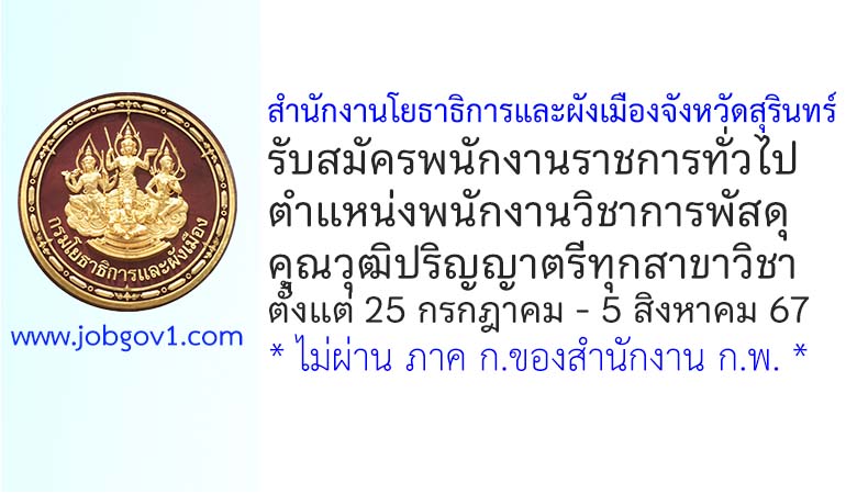 ประกาศจังหวัดสุรินทร์ เรื่อง รับสมัครบุคคลเพื่อเลือกสรรเป็นพนักงานราชการทั่วไป ตำแหน่ง พนักงานวิชาการพัสดุ จำนวน 1 อัตรา