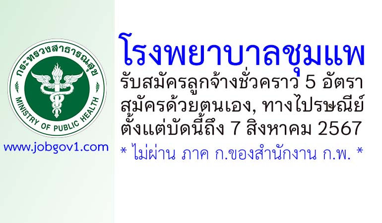 โรงพยาบาลชุมแพ รับสมัครลูกจ้างชั่วคราว 5 อัตรา ตั้งแต่บัดนี้ถึง 7 สิงหาคม 2567