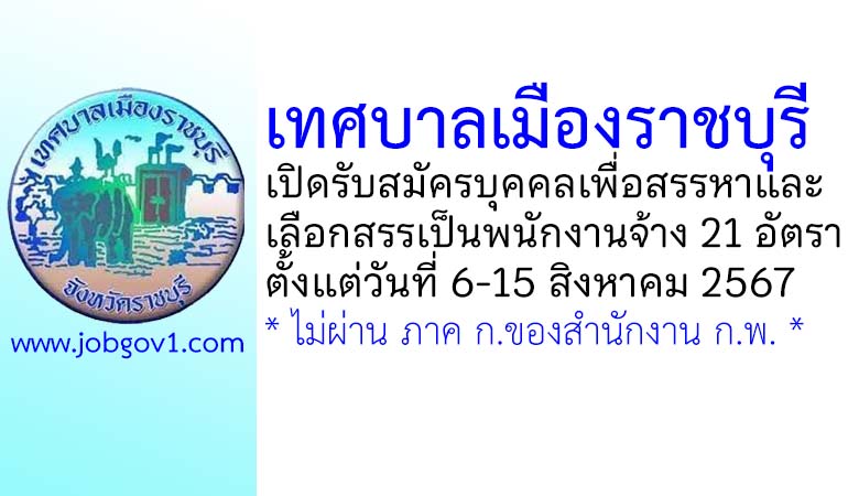 เทศบาลเมืองราชบุรี รับสมัครบุคคลเพื่อสรรหาและเลือกสรรเป็นพนักงานจ้าง 21 อัตรา ตั้งแต่วันที่ 6-15 สิงหาคม 2567