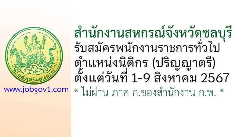 สำนักงานสหกรณ์จังหวัดชลบุรี รับสมัครพนักงานราชการทั่วไป ตำแหน่งนิติกร ตั้งแต่วันที่ 1-9 สิงหาคม 2567