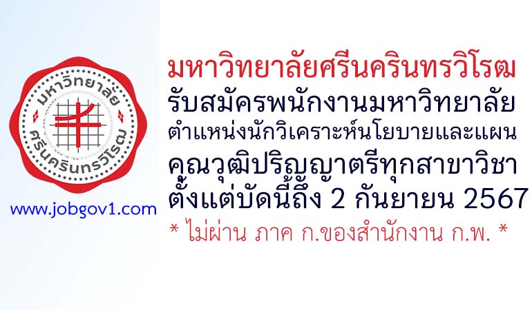 มหาวิทยาลัยศรีนครินทรวิโรฒ รับสมัครพนักงานมหาวิทยาลัย ตำแหน่งนักวิเคราะห์นโยบายและแผน ตั้งแต่บัดนี้ถึง 2 กันยายน 2567
