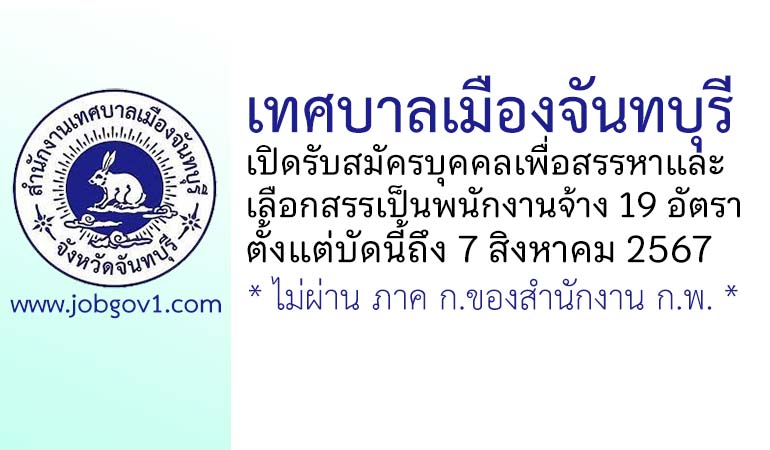 เทศบาลเมืองจันทบุรี รับสมัครบุคคลเพื่อสรรหาและเลือกสรรเป็นพนักงานจ้าง 19 อัตรา ตั้งแต่บัดนี้ถึง 7 สิงหาคม 2567