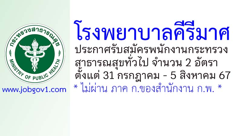 โรงพยาบาลคีรีมาศ รับสมัครพนักงานกระทรวงสาธารณสุขทั่วไป 2 อัตรา ตั้งแต่ 31 กรกฎาคม – 5 สิงหาคม 2567