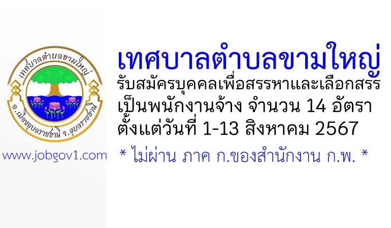 เทศบาลตำบลขามใหญ่ รับสมัครบุคคลเพื่อสรรหาและเลือกสรรเป็นพนักงานจ้าง 14 อัตรา ตั้งแต่วันที่ 1-13 สิงหาคม 2567