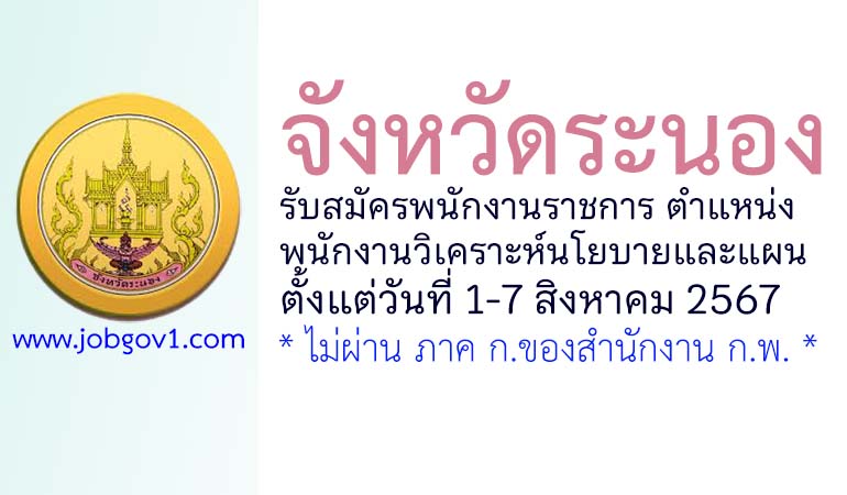 จังหวัดระนอง รับสมัครพนักงานราชการทั่วไป ตำแหน่งพนักงานวิเคราะห์นโยบายและแผน ตั้งแต่วันที่ 1-7 สิงหาคม 2567