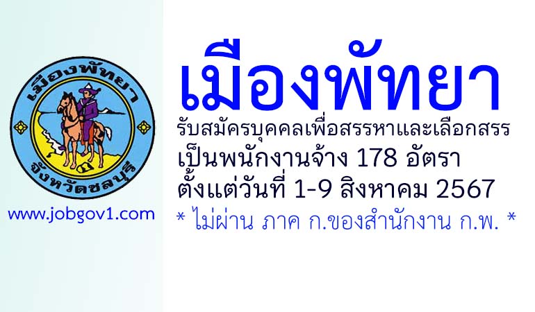 เมืองพัทยา รับสมัครบุคคลเพื่อสรรหาและเลือกสรรเป็นพนักงานจ้าง 178 อัตรา ตั้งแต่วันที่ 1-9 สิงหาคม 2567