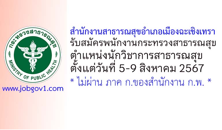 สำนักงานสาธารณสุขอำเภอเมืองฉะเชิงเทรา รับสมัครพนักงานกระทรวงสาธารณสุขทั่วไป ตำแหน่งนักวิชาการสาธารณสุข ตั้งแต่วันที่ 5-9 สิงหาคม 2567