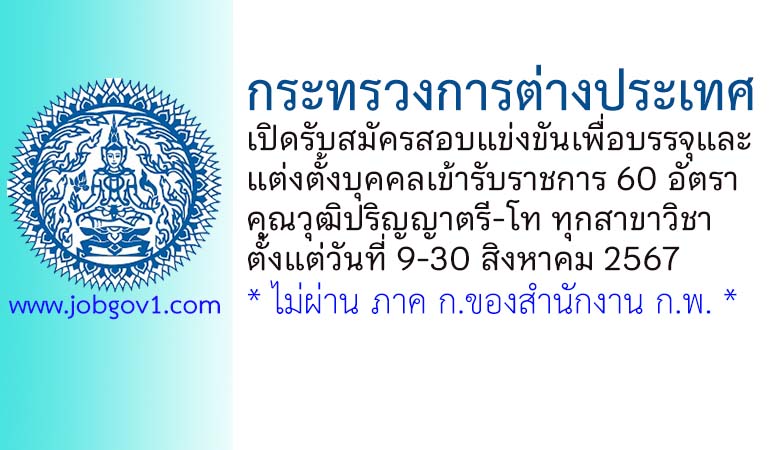 กระทรวงการต่างประเทศ รับสมัครสอบแข่งขันเพื่อบรรจุและแต่งตั้งบุคคลเข้ารับราชการ 60 อัตรา ตั้งแต่วันที่ 9-30 สิงหาคม 2567