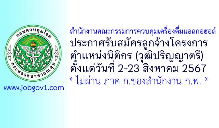 สำนักงานคณะกรรมการควบคุมเครื่องดื่มแอลกอฮอล์ รับสมัครลูกจ้างโครงการ ตำแหน่งนิติกร ตั้งแต่วันที่ 2-23 สิงหาคม 2567