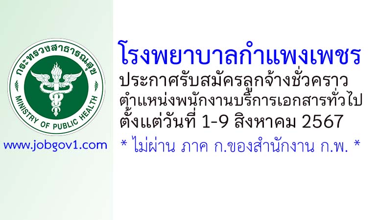 โรงพยาบาลกำแพงเพชร รับสมัครลูกจ้างชั่วคราว ตำแหน่งพนักงานบริการเอกสารทั่วไป ตั้งแต่วันที่ 1-9 สิงหาคม 2567
