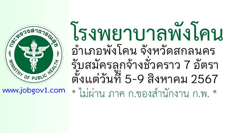 โรงพยาบาลพังโคน รับสมัครลูกจ้างชั่วคราว 7 อัตรา ตั้งแต่วันที่ 5-9 สิงหาคม 2567