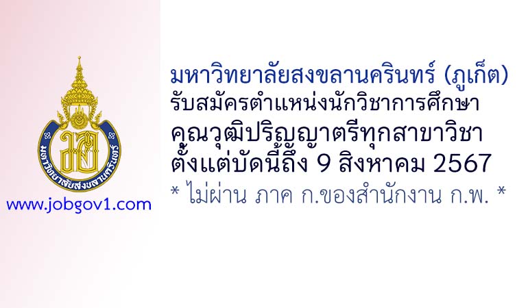 มหาวิทยาลัยสงขลานครินทร์ (ภูเก็ต) รับสมัครนักวิชาการศึกษา (ปฏิบัติงานบัณฑิตศึกษา) ตั้งแต่บัดนี้ถึง 9 สิงหาคม 2567