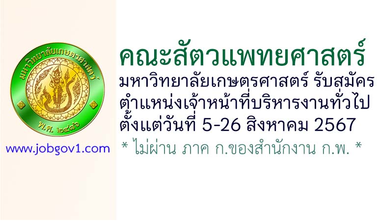 คณะสัตวแพทยศาสตร์ มหาวิทยาลัยเกษตรศาสตร์ รับสมัครเจ้าหน้าที่บริหารงานทั่วไป ตั้งแต่วันที่ 5-26 สิงหาคม 2567