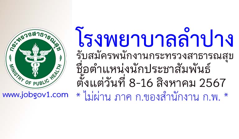 โรงพยาบาลลำปาง รับสมัครพนักงานกระทรวงสาธารณสุขทั่วไป ตำแหน่งนักประชาสัมพันธ์ ตั้งแต่วันที่ 8-16 สิงหาคม 2567