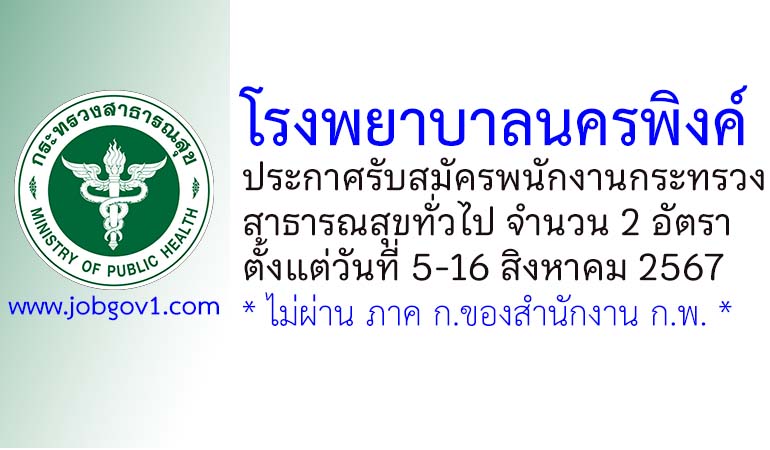 โรงพยาบาลนครพิงค์ รับสมัครพนักงานกระทรวงสาธารณสุขทั่วไป 2 ตำแหน่ง ตั้งแต่วันที่ 5-16 สิงหาคม 2567