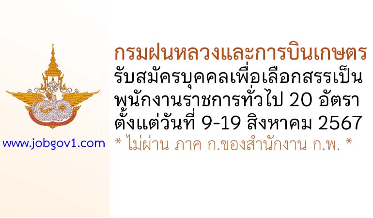 กรมฝนหลวงและการบินเกษตร รับสมัครบุคคลเพื่อเลือกสรรเป็นพนักงานราชการทั่วไป 20 อัตรา ตั้งแต่วันที่ 9-19 สิงหาคม 2567