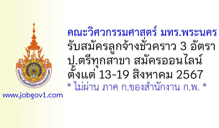 คณะวิศวกรรมศาสตร์ มทร.พระนคร รับสมัครลูกจ้างชั่วคราว 3 อัตรา ตั้งแต่วันที่ 13-19 สิงหาคม 2567