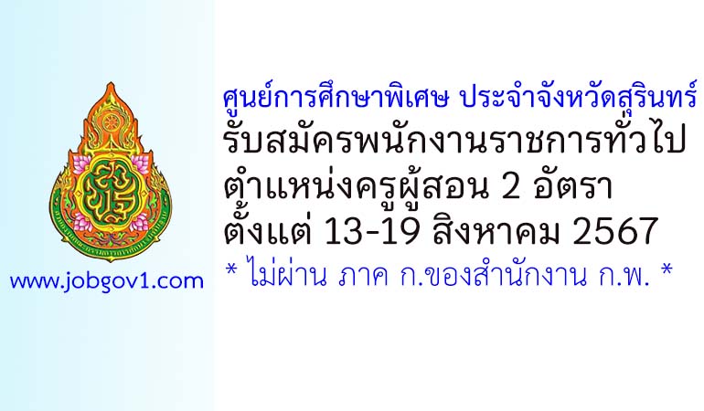 ศูนย์การศึกษาพิเศษ ประจำจังหวัดสุรินทร์ รับสมัครพนักงานราชการทั่วไป ตำแหน่งครูผู้สอน 2 อัตรา ตั้งแต่วันที่ 13-19 สิงหาคม 2567