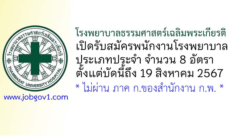โรงพยาบาลธรรมศาสตร์เฉลิมพระเกียรติ รับสมัครพนักงานโรงพยาบาล ประเภทประจำ 8 อัตรา ตั้งแต่วันที่ 6-19 สิงหาคม 2567