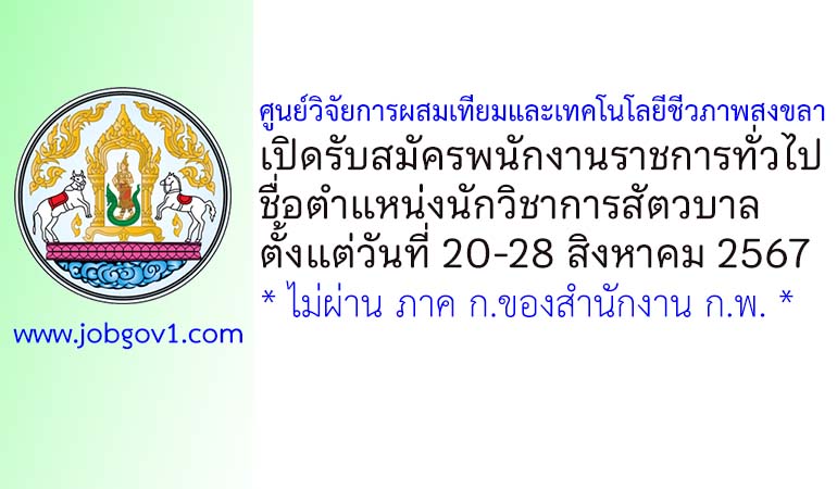 ศูนย์วิจัยการผสมเทียมและเทคโนโลยีชีวภาพสงขลา รับสมัครพนักงานราชการทั่วไป ตำแหน่งนักวิชาการสัตวบาล ตั้งแต่วันที่ 20-28 สิงหาคม 2567