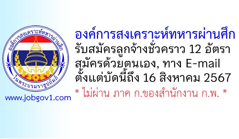 องค์การสงเคราะห์ทหารผ่านศึก รับสมัครลูกจ้างชั่วคราว 12 อัตรา ตั้งแต่บัดนี้ถึง 16 สิงหาคม 2567