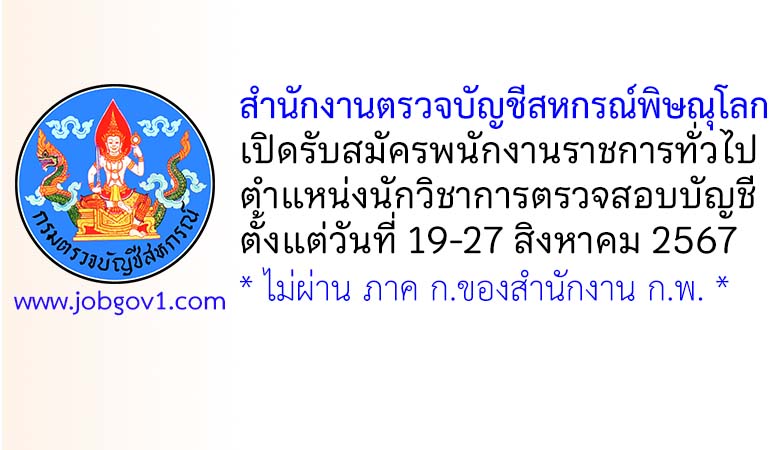 สำนักงานตรวจบัญชีสหกรณ์พิษณุโลก รับสมัครพนักงานราชการทั่วไป ตำแหน่งนักวิชาการตรวจสอบบัญชี ตั้งแต่วันที่ 19-27 สิงหาคม 2567